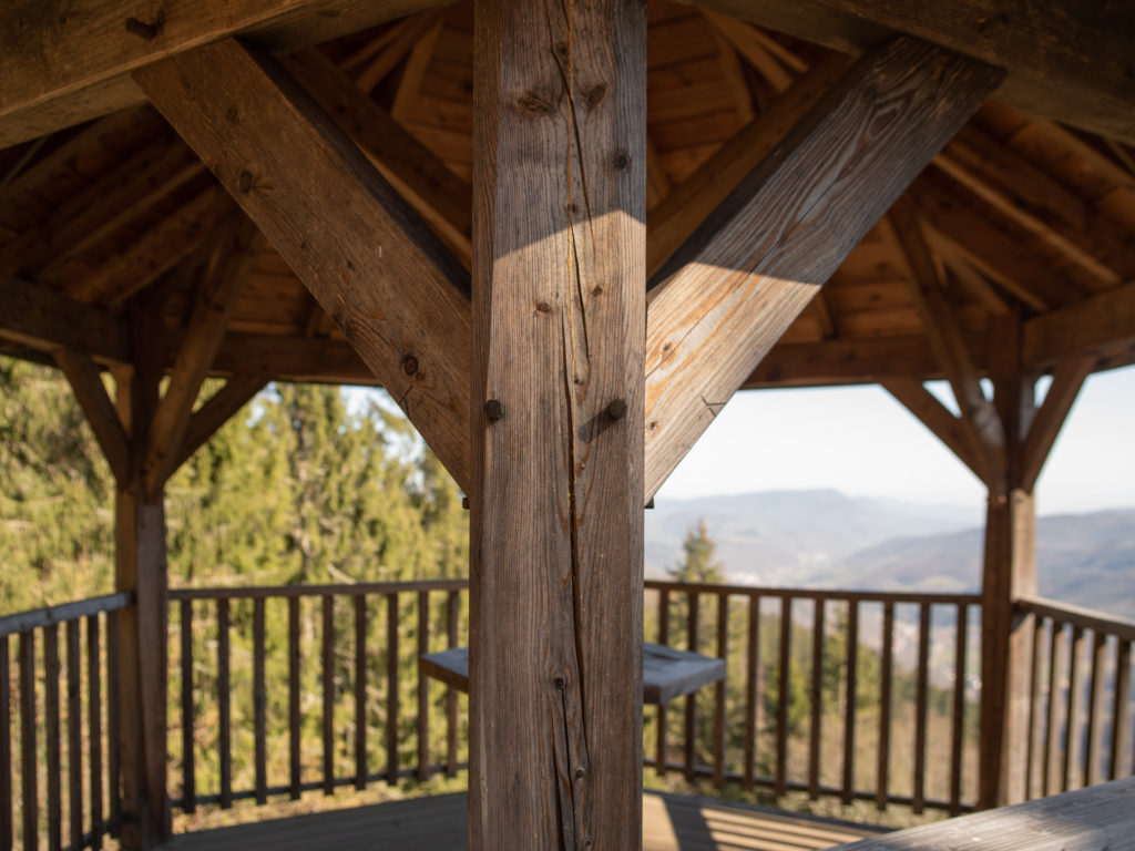 La Communauté de Commune du Val d’Argent (CCVA) nous a contacté pour réaliser cette gloriette implantée dans une forte pente, comme un perchoir pour profiter de la vue splendide sur Sainte-Marie-aux-Mines et le Val d’Argent.